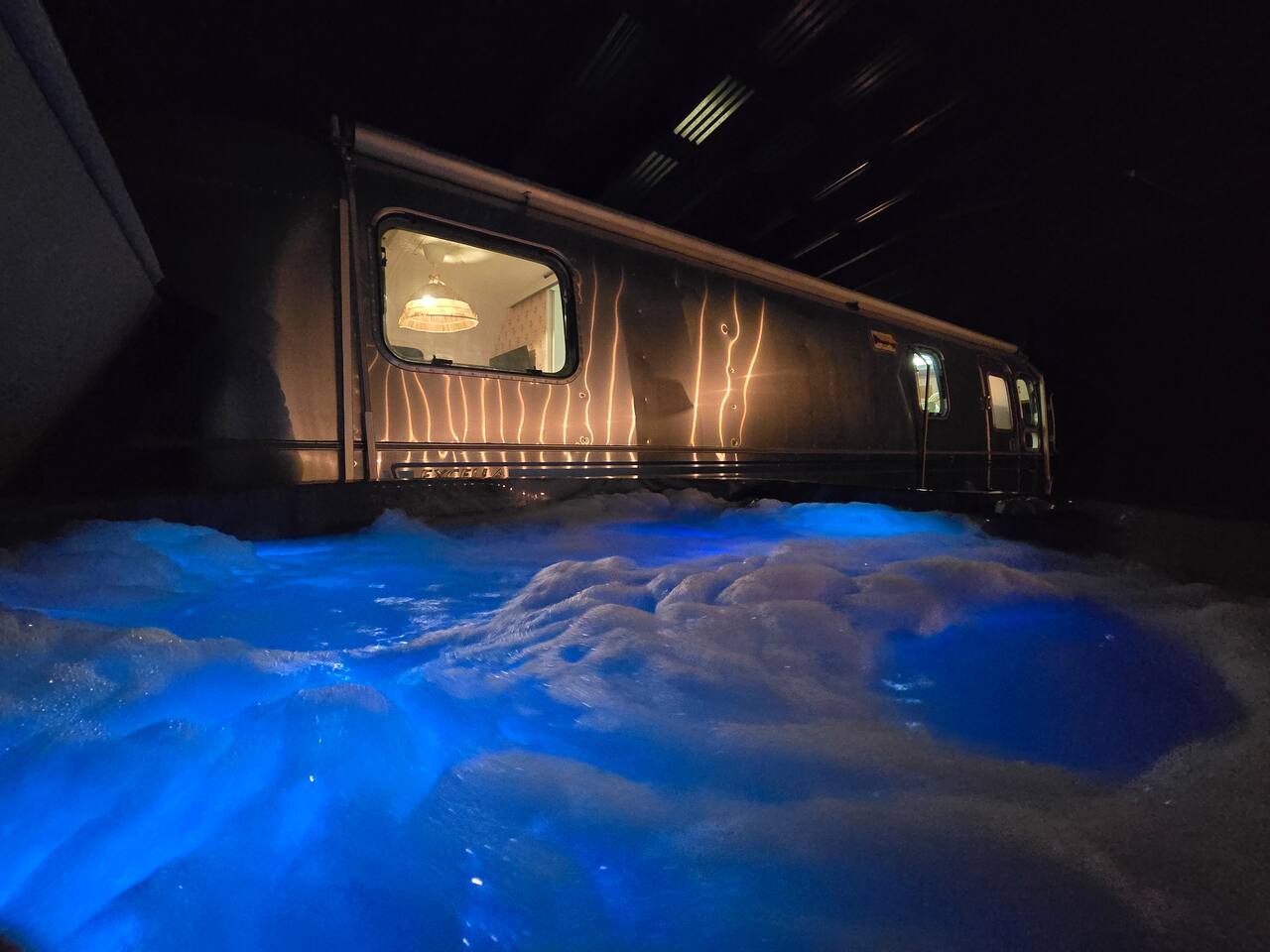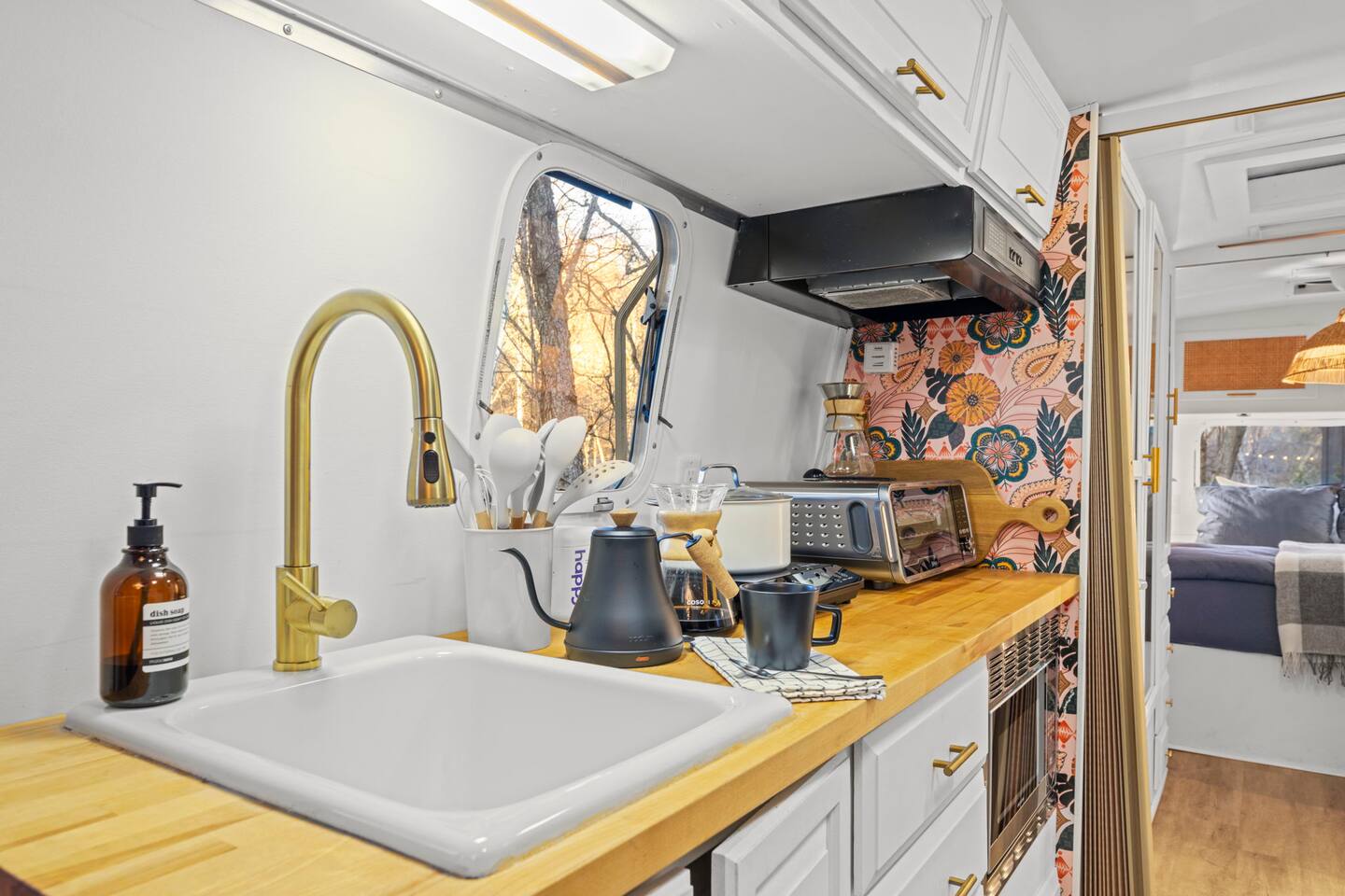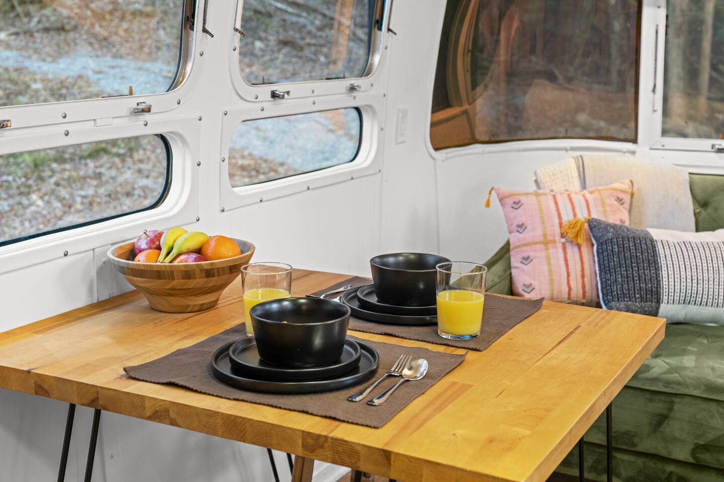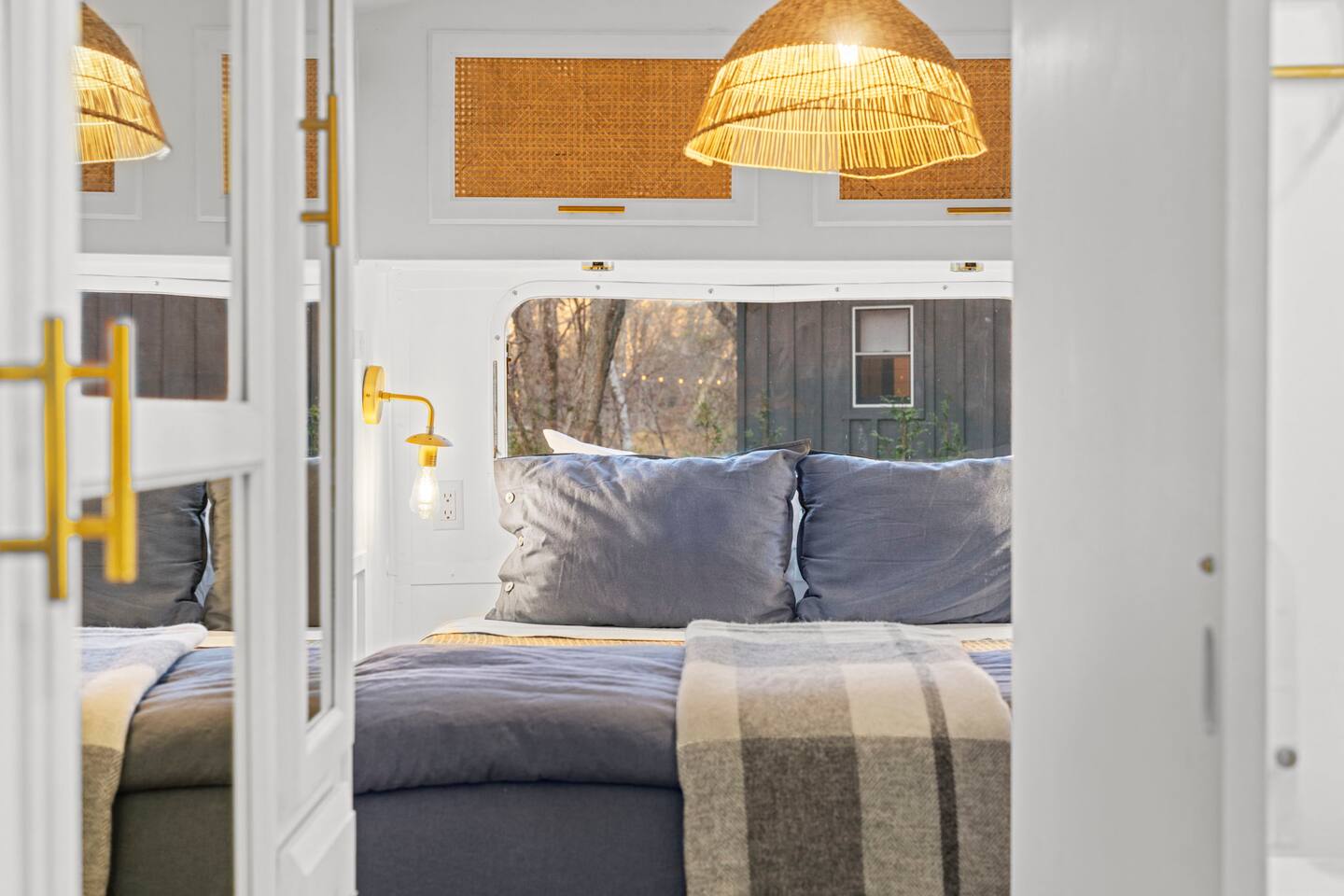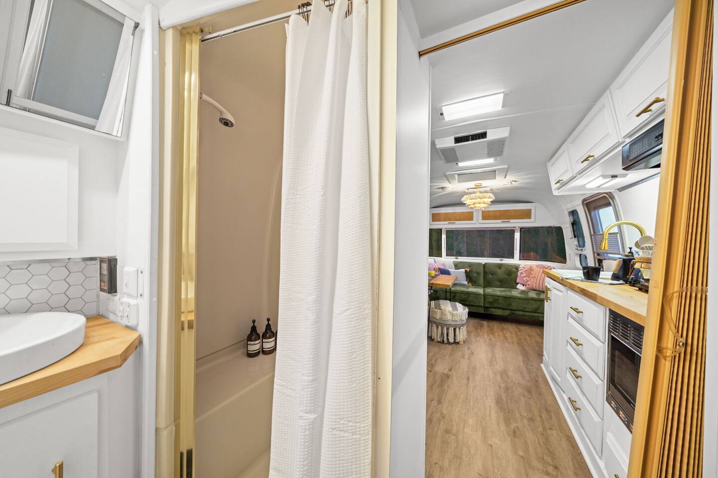 While our Airstream features a convenient single bathroom and shower, perfect for quick refreshes, we also offer access to a separate, luxurious bathhouse for an elevated experience. This shared bathhouse is thoughtfully designed to provide a private full-size shower and bathroom exclusively for each Airstream, ensuring your comfort and privacy. With heated floors and a spacious layout, the bathhouse delivers ultimate relaxation no matter the season. Whether you enjoy the cozy charm of the Airstream or the indulgent amenities of the bathhouse, you’ll have everything you need for a comfortable and refreshing stay. In addition to its charming indoor amenities, the Airstream offers an array of outdoor luxuries to enhance your stay. Unwind in your private hot tub under the stars or gather around the cozy fire pit, complete with comfortable outdoor furniture for relaxing evenings. The outdoor kitchen is fully equipped with a grill, sink, and picnic table, making it easy to prepare and enjoy meals surrounded by nature. This space is designed for both relaxation and connection, ensuring a perfect balance of comfort and outdoor adventure.