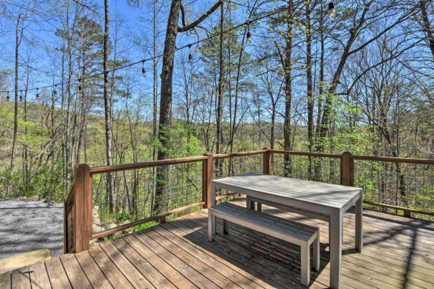 This recently renovated 2-bedroom, 1-bath vacation rental cabin. Blending modern comforts with the natural beauty of the Chattahoochee Forest, this retreat grants outdoorsmen access to trout fishing along the Toccoa River. Or relax in nature and soak in the private hot tub. Enjoy quiet evening grilling by the firepit. Just down the road from Mercier where you can pick locally grown fruit.