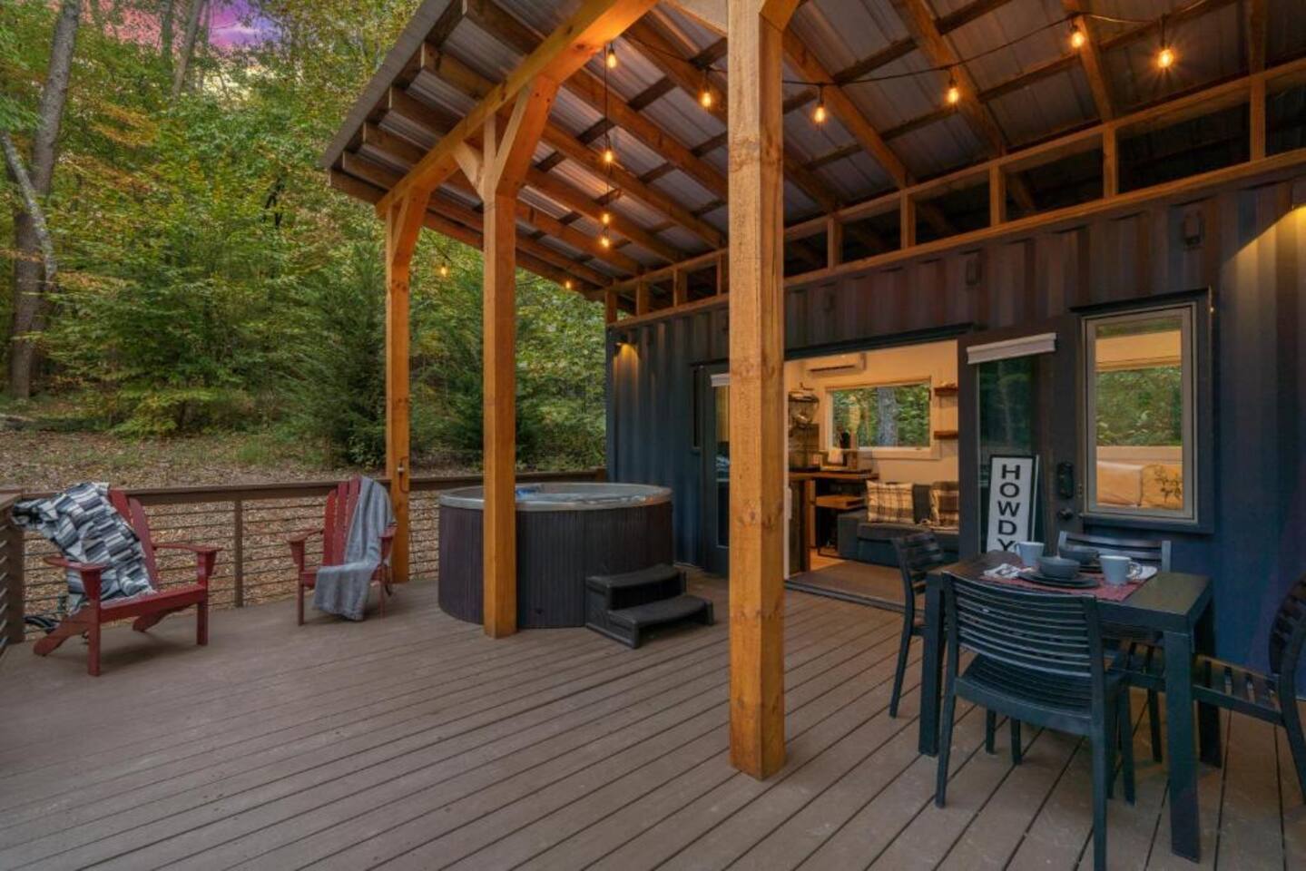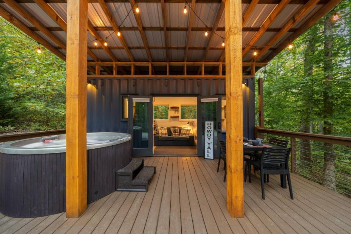 Shipping Container Hot tub Grill Firepit Deck